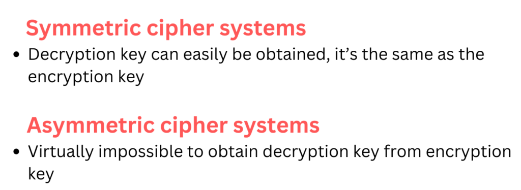 Asymmetric or Public Cipher Systems
