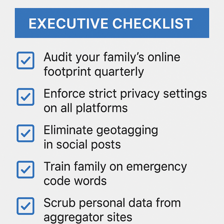 - Engage an executive privacy firm for ongoing oversight.